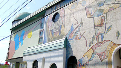 | 昭和60年1月 | 新園舎竣工 東壁面の吉岡弘昭先生(名古屋芸大及び創形美術講師・画家)による原画・壁画制作は、当時大きな話題になり中日新聞の記事に取り上げられました。 |