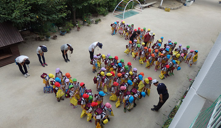- 送迎・・・保護者の方に園まで送り迎えしていただきます。
