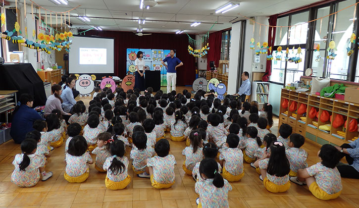 お当番になった子は職員室へお手紙を運びます。みんなで元気よく朝の歌やあいさつをした後、担任のピアノに合わせて季節の歌を楽しく歌います。