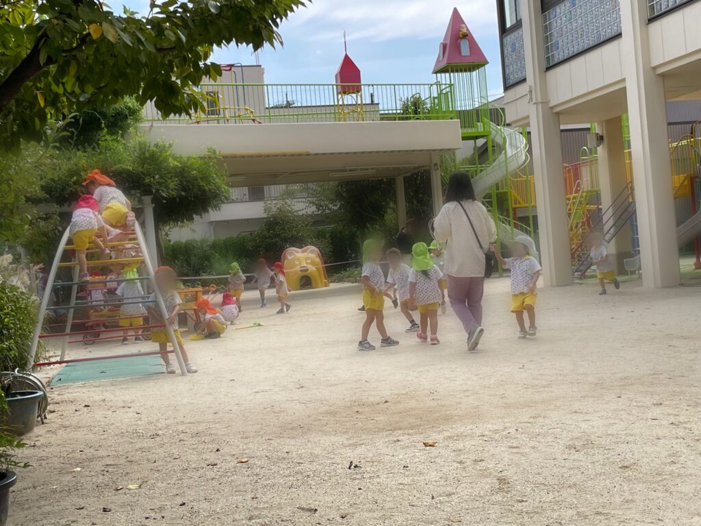 年中さんや年長さんが去年の運動会で行った玉入れやよーいどん!をしているのを見て、年少さんや満3歳クラスも「やってみたいー!」と言う声があがり、挑戦✨